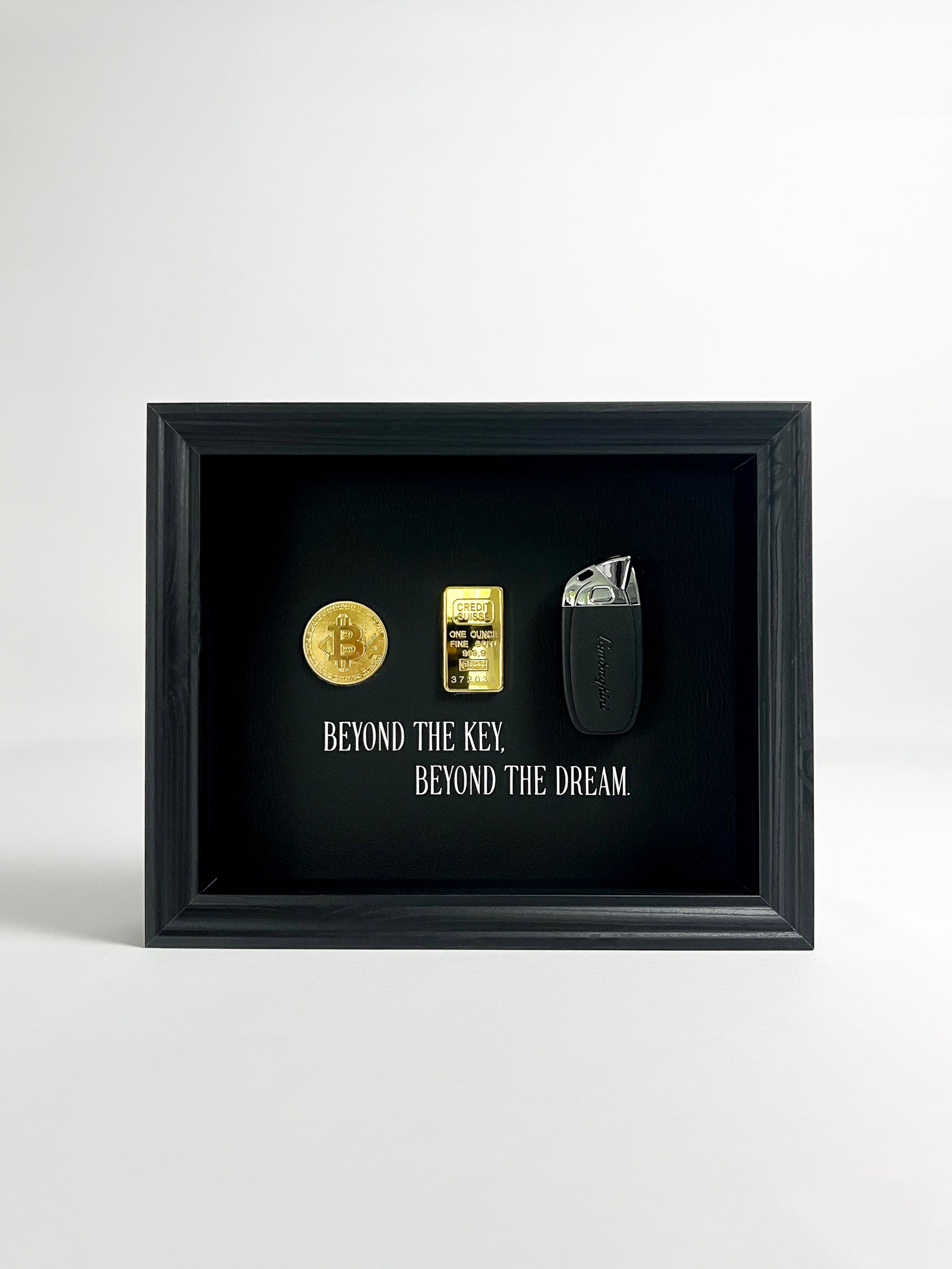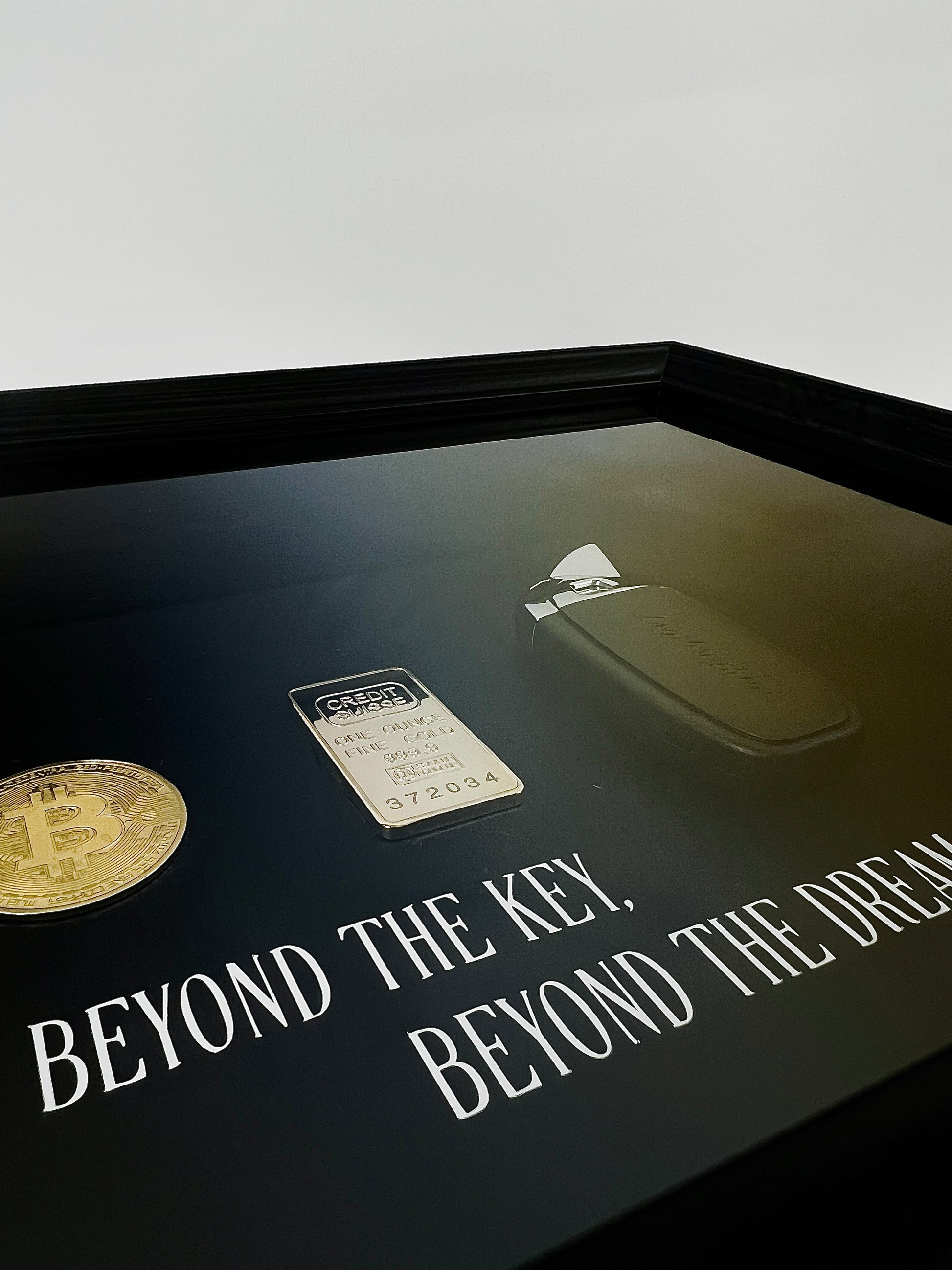 Ce tableau capture l’essence même de l’ambition moderne : celle qui dépasse les rêves pour entrer dans le concret. Bitcoin, or, supercar — trois symboles, une vision.